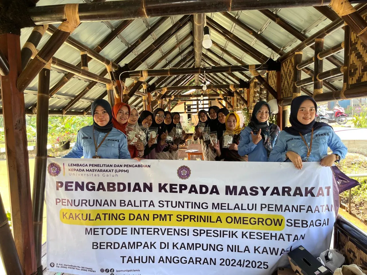 Beberapa waktu yang lalu Kalkulator deteksi stunting menyelenggarakan kegiatan pengabdian kepada masyarakat dengan judul Penurunan Balita Stunting Melalui Pemanfaatan Kakulating dan PMT Sprinila Omegrow Sebagai Metode Intervensi Spesifik Kesehatan Berdampak Di Kampung Nila Kawali . Kegiatan ini memiliki dua mitra. Mitra pertama adalah Kader Posyandu Desa Kawali, sementara Mitra kedua adalah Kampung Nila Kawali. Adapun tujuan dari kegiatan pengabdian kepada masyarakat ini adalah yakni dimensi ekonomi produktif melalui pengelolaan potensi ikan nila,dan dimensi kesehatan melalui upaya perbaikan gizi balita. Keduanyasaling terkait, sebab pengembangan produk pangan bergizi tidak hanya ditujukanuntuk peningkatan nilai ekonomi, tetapi juga sebagai strategi pencegahanstunting. Kampung Nila Kawali memiliki potensi unggulan berupa budidayaikan nila yang cukup melimpah. Namun, hingga kini pengelolaan masih terbataspada penjualan olahan ikan berbasis kuliner. Selain itu, belum adaupaya hilirisasi produk berbasis riset untuk menghasilkan olahan panganbernilai gizi tinggi. Kendala lain terletak pada keterbatasan pengetahuanmasyarakat mengenai teknologi pengolahan, standarisasi mutu, serta strategipemasaran modern, khususnya pemanfaatan platform digital. Akibatnya, potensiikan nila yang seharusnya mampu menjadi komoditas unggulan daerah dan pusat supplierprotein hewani masih belum dimaksimalkan. Melihat kondisi tersebut, tim menginisiasipengembangan Sprinila Omegrow, yaitu PMT berbasis tepung ikan nila yangdiperkaya dengan kelor, beras, dan Sacha Inchi Oil. Inovasi ini diharapkanmenjadi solusi hilirisasi produk lokal, yang tidak hanya meningkatkan asupangizi balita, tetapi juga membuka peluang usaha baru bagi masyarakat. Melaluipendampingan produksi, pelatihan teknologi tepat guna, serta pemasaran berbasisdigital, masyarakat Kampung Nila Kawali akan memperoleh peningkatan kapasitasdan daya saing produk. Di sisi lain, Posyandu sebagai ujungtombak pelayanan kesehatan masyarakat memiliki tantangan besar dalam upayapencegahan stunting. Masalah yang ditemui meliputi keterbatasan variasiPMT, literasi gizi ibu balita yang masih rendah, serta kurang optimalnyapencatatan tumbuh kembang anak. Selama ini, intervensi PMT lebih banyakberupa makanan sederhana yang belum memenuhi kebutuhan gizi seimbang,sementara pemantauan status gizi masih mengandalkan metode manual yang berisikoterjadi kesalahan.
